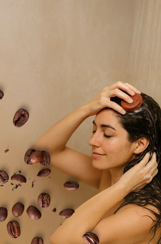 Kit composto da un doccia shampoo solido al caffè e una spugna in Konjak.