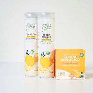Kit Puliti Fuori e Belli Dentro shampoo zenzero+doccia + sapone