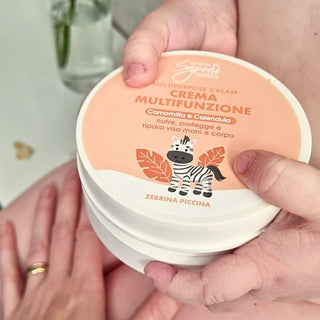 La Crema Multifunzione Camomilla e Calendula è formulata con ingredienti naturali per prendersi cura delicatamente dei piccolini di casa. La combinazione di oli emollienti ed estratti vegetali, tra cui la Camomilla e la Calendula, offre un effetto nutriente, calmante e protettivo sulla pelle dei bambini. La Camomilla lenisce e riduce l'arrossamento, mentre la Calendula ha proprietà addolcenti e lenitive.