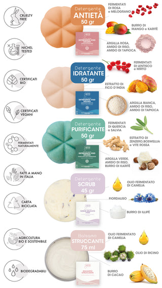 La formulazione del detergente purificante anti-imperfezioni è stata appositamente studiata per agire in modo significativo sulla pelle. Con l'aiuto degli estratti fermentati, ricchi di amminoacidi, oligoelementi e minerali, i detergenti solidi Officina dei Saponi sono un alleato ideale per la pelle del viso.