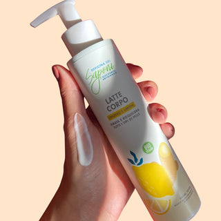 Aqua, Helianthus annuus seed oil (*), Myristyl lactate, Glyceryl stearate, Aloe barbadensis leaf juice (*), Simmondsia chinensis seed oil, Cetearyl alcohol, Glycerin, Prunus amygdalus dulcis oil, Cymbopogon citratus leaf oil, Hydrolyzed olive fruit (*), Gossypium herbaceum seed oil, Olea europaea fruit oil (*), Almond/Borage/Linseed/Olive acids/glycerides, Zingiber officinale root extract, Vitis vinifera fruit extract, Boswellia serrata resin extract, Tocopheryl acetate, Hydrolyzed rice protein, Sodium lauroyl glutamate, Xanthan gum, Myrtus communis oil, Lavandula hybrida oil, Citrus limon peel oil, Sodium stearoyl lactylate, Melaleuca leucadendron cajaputi oil, Juniperus mexicana wood oil, Abies alba leaf oil, Citric acid, Benzyl alcohol, Citral, Sodium benzoate, Potassium sorbate, Tetrasodium glutamate diacetate, d-Limonene, Linalool, Geraniol.