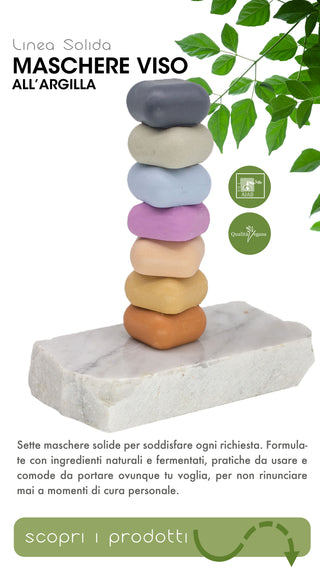 La maschera viso solida all'argilla rosa, ideale per pelli normali e delicate, trasforma la cura del viso in un'esperienza unica e funzionale.